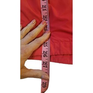 This Nike Golf women's jacket is perfect for both activewear and casual occasions. The jacket features a full zip closure and long sleeves, with a stand-up collar and hood for additional protection against the wind and rain. The red color is accentuated with the Nike logo, adding a stylish touch to the lightweight windbreaker. Made from 100% polyester outer shell material and polyester insulation material, this jacket is designed to keep you warm and comfortable during outdoor activities such as golf. It comes in size L and is a regular fit, suitable for most body types. Get your hands on this Nike Golf women's jacket and stay protected from the elements while looking fashionable.