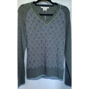Nike Golf Women's Medium New Merino Wool V-Neck Sweater Grey Houndstooth Pattern