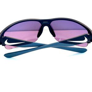 Details: NIKE EV0871-401 golf X2 E sunglasses matte midnight navy/Silver, golf tint lens features NIKE max optics with precise visual information at all angles of view. These golf X2 E sunglasses have a lightweight nylon frame for comfort and durability. The adjustable silicone secure-wrap temples are for a customized fit, added grip, and maximum stability. The adjustable silicone ventilated nose bridge improves comfort, reduces fogging and is a customized fit. These sunglasses have a deep cut lens for maximum coverage and a thin temple design for under hat fit. Cam-action hinges snap firmly into place. Interchange pouch included. Built from the ground up for reading the green.