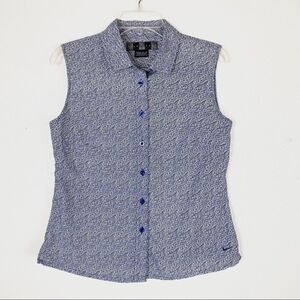Nike Golf Blue & White Floral Sleeveless Button Up Shirt
