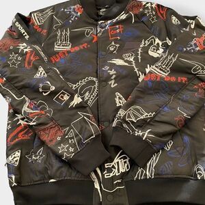 Nike Graffiti Print NSW Logo Full Zip Black Bomber Jacket Mens size Small New with Tags