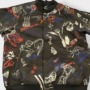 Nike Graffiti Print NSW Logo Full Zip Black Bomber Jacket Mens size Small New