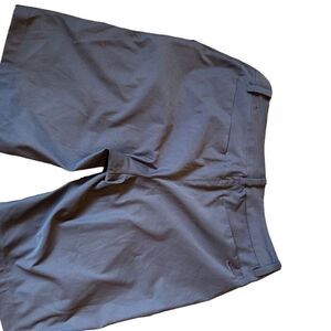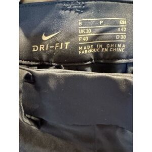 These Nike Chino shorts are designed for men and come in a standard size 6. They are gray and made from polyester, featuring Dri-FIT technology for comfort. The shorts have a flat front with belt loops, a button closure, and include two front slash pockets and two back pockets. Manufactured in China, they are machine washable for easy care. The pants are pre-owned.