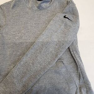 Nike Gray Dri-Fit Knit Hoodie Pullover Black Swoosh Logo Hooded Kangaroo Women's Size Small
