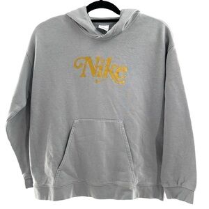 Nike Gray Hoodie Sweatshirt With Gold Script On Front