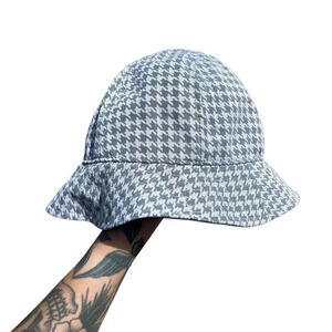 Stylish Nike hat featuring a gray houndstooth pattern. Accented with a bold red logo. Perfect for casual wear.
