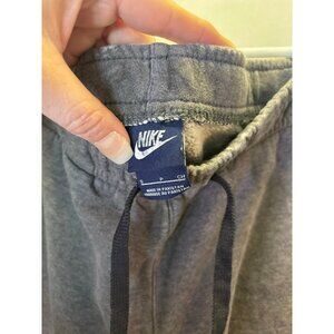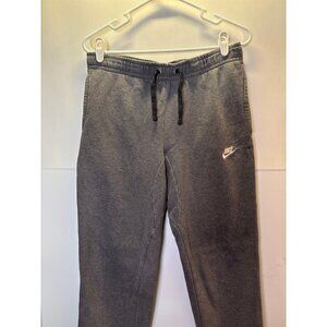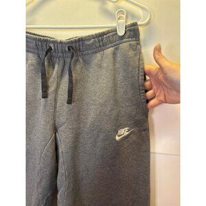 Nike gray joggers size small used condition has pockets, elastic waist and drawstring. See all photos for condition on the back around the butt area. There is a little bit of pulling and on the back left leg. There is a little discoloring spot. These are jogger styles so they have the elastic ankle. Measurements are in photos sold as is smoke free pet friendly home.