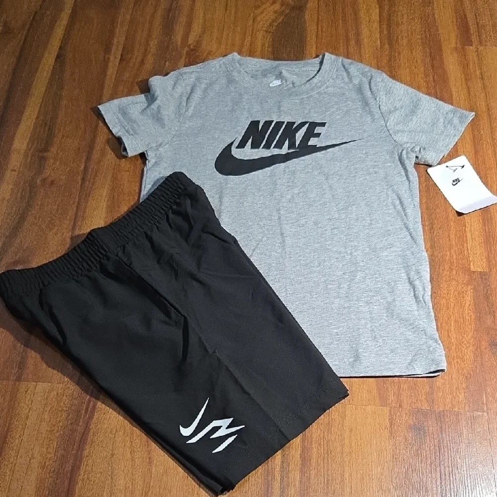 Nike Gray Logo T-Shirt with Black Athletic Shorts