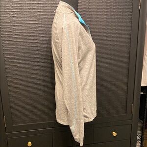 This Nike hoodie features a stylish fitted silhouette in a light heather gray color, perfect for both athletic and casual wear. The long sleeves and quarter-zip closure provide comfort and versatility, making it an ideal choice for various activities. Reflective at back of sleeve and neck.