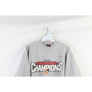 Comfortable gray sweatshirt. Features 'National Champions' graphic. Classic Nike style.