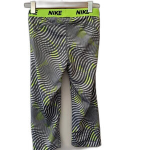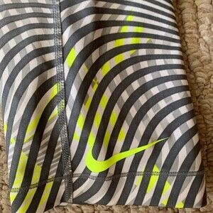 Nike Gray Neon Green Striped Dri-Fit Cropped Leggings Size Medium