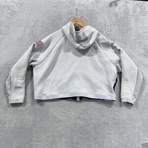 Stylish Nike hoodie with Olympic logo. Features a full zip and hood. Comfortable and sporty design.