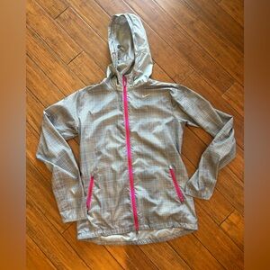 Nike jacket with a sleek gray plaid design. Perfect for active wear.