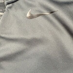 Stylish gray quarter-zip pullover by Nike. Perfect for casual wear.