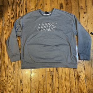 This gray sweater has a size of Large and is designed to fit men of different body types. The color is a classic gray that will complement any outfit, while the pullover style makes it easy to wear. With the Nike brand, you can be assured of quality and style.