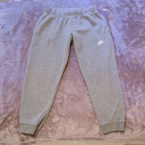 Experience ultimate comfort with these Nike gray sweatpants, featuring a relaxed fit and elastic cuffs for a modern, tapered look. Crafted from a soft fleece blend, with pockets.