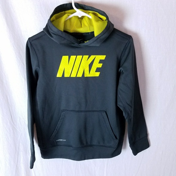 Excellent condition!! No wear on this at all. It's a gray sweatshirt with a neon yellow/green Nike on it. It had a hood and a kangaroo pocket.