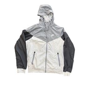Nike Gray Black White Windrunner Nylon Glanz Zip Up Windbreaker Jacket Size S