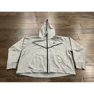 Comfortable gray hoodie. Features zip-up front. Classic Nike logo on chest. Perfect for casual wear.