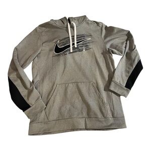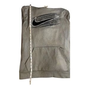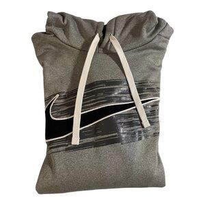 Experience the perfect blend of style and comfort with this Nike sweatshirt hoodie. Featuring a sleek gray design with black accents, this pullover is crafted from soft fleece material for a cozy fit. The iconic Nike swoosh and graphic design on the front add a sporty touch to your casual wardrobe.