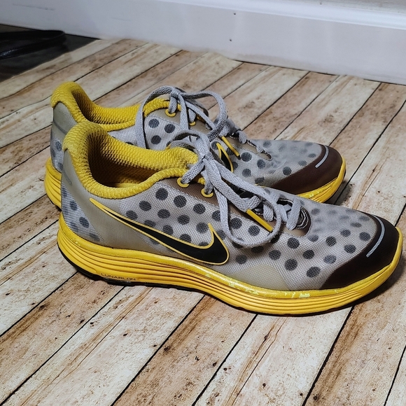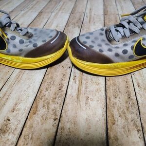 Stylish Nike sneakers with a gray upper and vibrant yellow highlights. Perfect for casual wear.