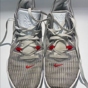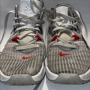 Nike Gray and Red Athletic Shoes with Cushioned Sole