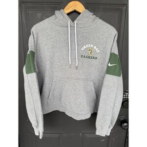 Nike Green Bay Packers Historic Women's Crop Pullover Hoodie Gray Medium