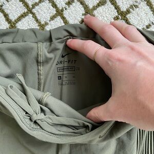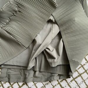 This Nike skort features an asymmetrical A-line silhouette with elegant pleats, perfect for both work and casual settings. The structured fabric ensures the pleats maintain their shape, offering a stylish and dynamic look. Front has a plain fabric layer and back in fully pleated.