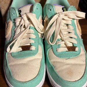 Experience a blend of vintage charm and modern style with these Nike sneakers, featuring a striking green and cream color palette. Crafted with a mix of suede and synthetic leather, these low-top sneakers offer a unique texture and a comfortable fit. Perfect for casual outings, they boast a rounded toe and a distinctive stitching pattern for added flair.