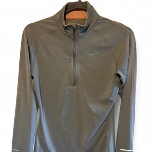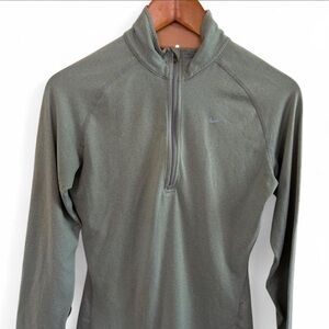 Nike pullover with long sleeves. Olive green color and half-zip front.
