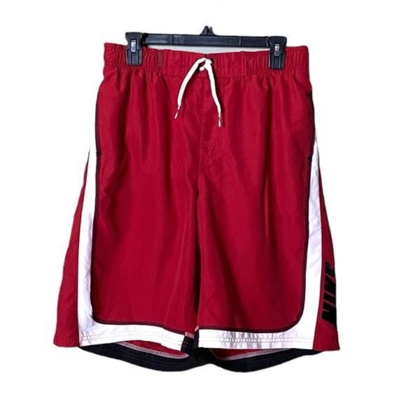 Nike Grey Tag Mens Swim Trunks Size Large Red Black White Drawstring