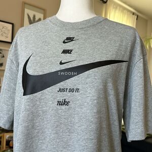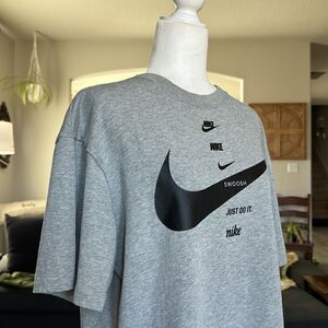 Nike Grey Swoosh T-shirt Gray Short Sleeves Cotton S Oversized Loose Activewear
