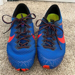 Good used condition, Nike XC racing cleats. Blue with red Nike swish