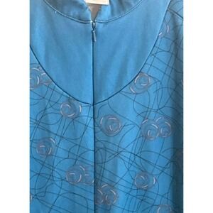 This is a preowned woman's large size 12-14 Nike Cycling teal swirl patterned long sleeve jacket with reflective dots on the bottom. It is in very good condition.