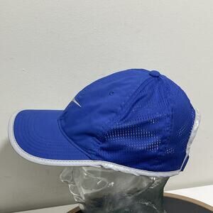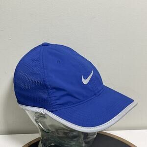 Nike Hat Cap Strap Back Blue Mens Reflective Trim Mesh Dri-FIT Running Athletic
