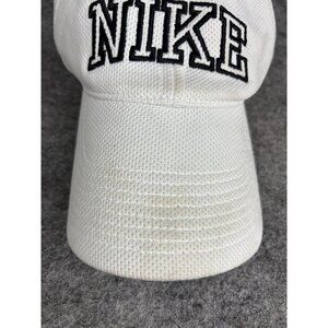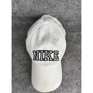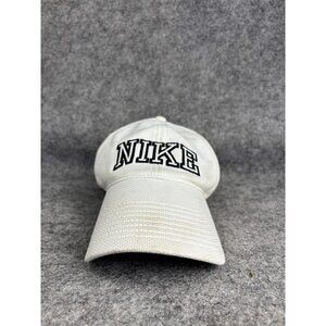 Nike Hat Cap Strap Back White Black Embroidered Wordmark Swoosh Athletic Mens