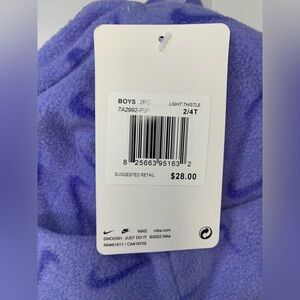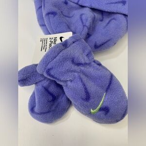 New with tags. Nike 2pc hat & mittens set. Fleece. Chin strap. Light Thistle. Toddler boys size 2/4T.