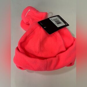 New with tags. Nike 2pc hat & mittens set. Fleece. Chin strap. Racer Pink. Girls size 12/24 months.