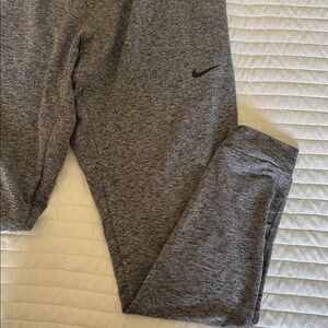Stylish heather gray joggers with Dri-FIT technology. Nike logo on waistband.