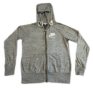 Nike Heather Gray Just Do It Womens Full Zip Hoodie Sweater Blue Label Small VTG