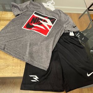 Nike Heather Gray Tee with Red and Black Graphic shirt and shorts set