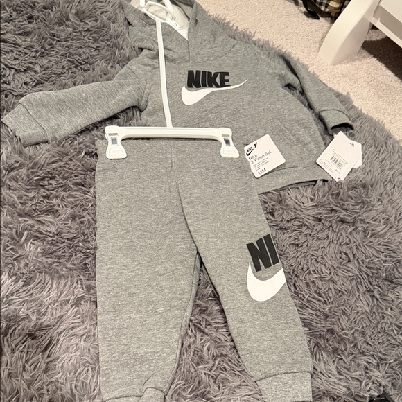 Cozy Nike tracksuit with hoodie and pants. Features bold logo design. Perfect for everyday wear.