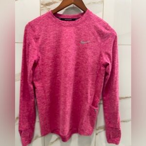 Vibrant pink long sleeve by Nike. Features a sleek logo on the chest.
