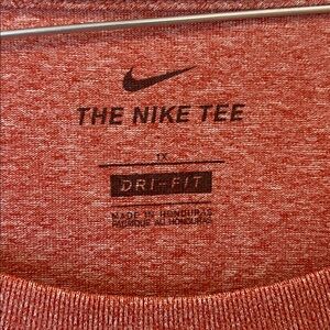 Heathered red Nike tee with iconic swoosh. Casual and versatile. Flattering curved hem!