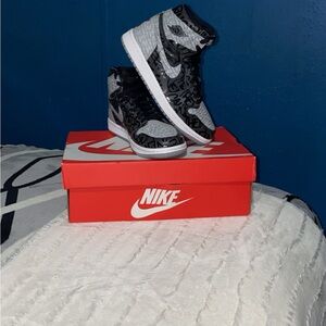Sleek Nike high-tops with a bold black and white pattern. Ideal for everyday style.