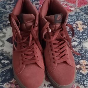 Nike high-tops with a brown upper and black swoosh. Ideal for everyday style. Worn only a handful of times