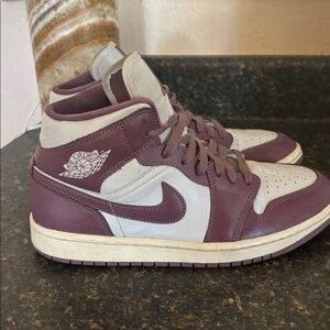 Nike high-top sneakers with a sleek purple and cream design. Ideal for everyday style.