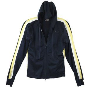 Nike Hooded Mesh Full Zip Athletic Track Jacket Size S Navy Blue White Yellow