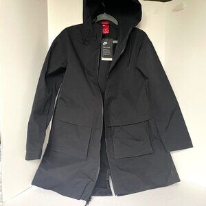 Nike Hooded Parka Jacket Women’s Small Black Water Resistant Packable Midi Coat