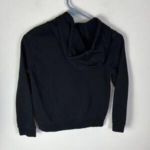 Gently Used Nike Full Zip Hoodie. This is a boy's small. Black throughout with white Nike swoosh and text logo embroidered on the chest. Front pockets. Classic style! 80% cotton, 20% polyester.